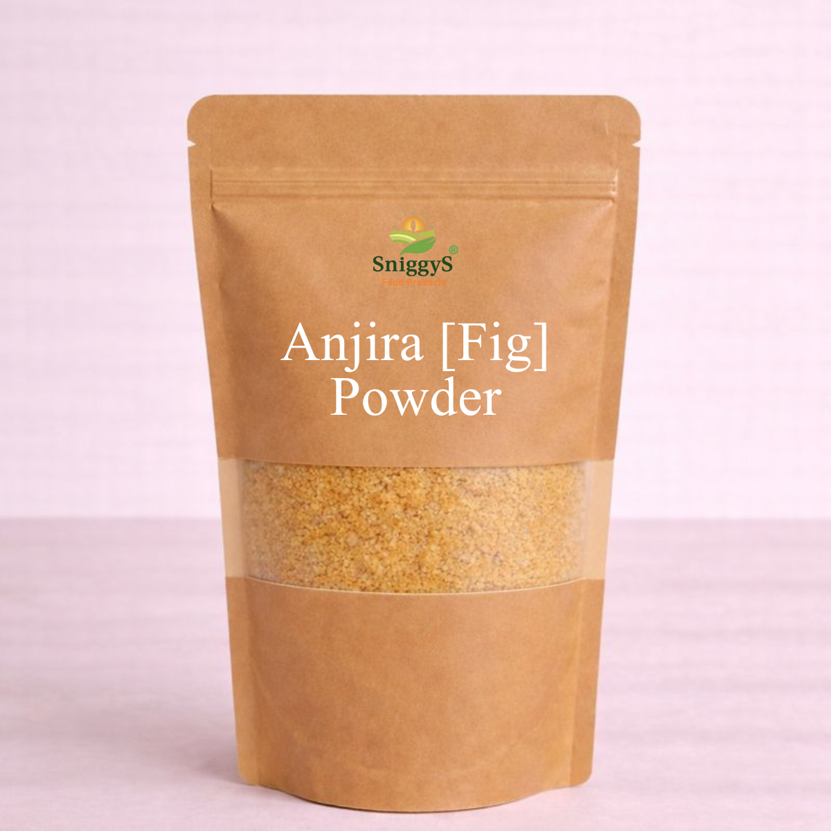 Anjira (fig) powder is a nutrient-dense superfood made from finely processed figs, valued for its concentrated fiber, antioxidants, and essential minerals like calcium, iron, and potassium. In both traditional Ayurveda and modern wellness, it is primarily used as a natural digestive aid; its high soluble fiber and the enzyme help soften stools, promote regular bowel movements, and nourish beneficial gut bacteria.