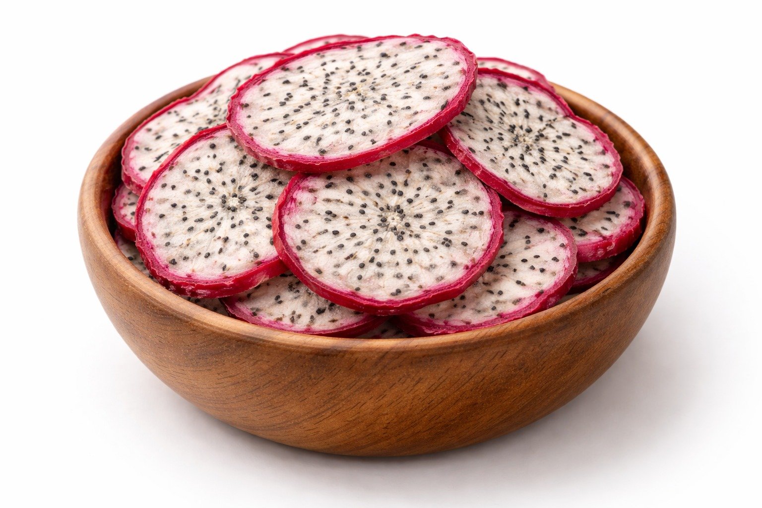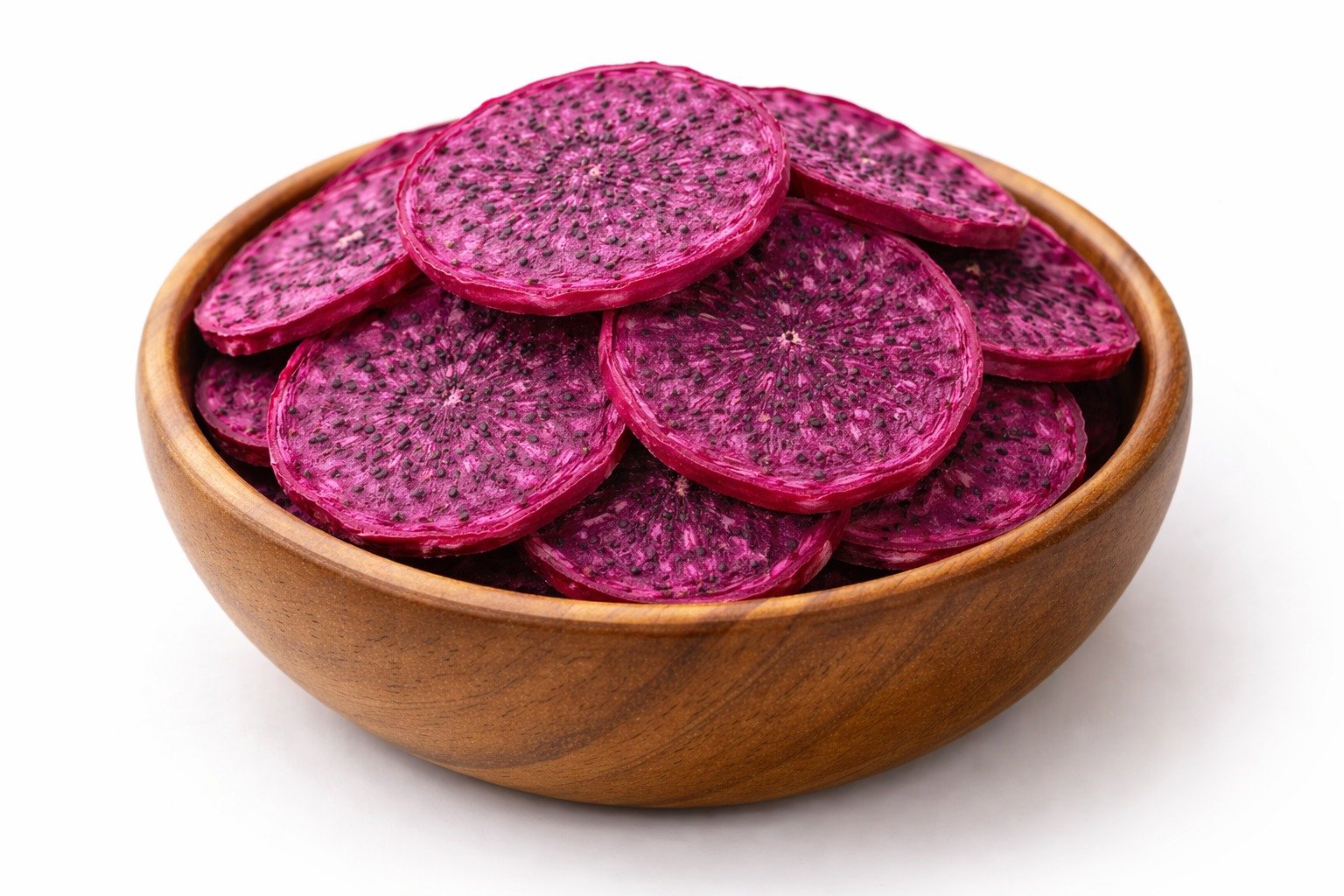 Dragon fruit slices are visually striking and mildly sweet, dehydrated to maintain their unique texture and nutrients. They make an attractive, healthy snack and add a premium touch to food applications.